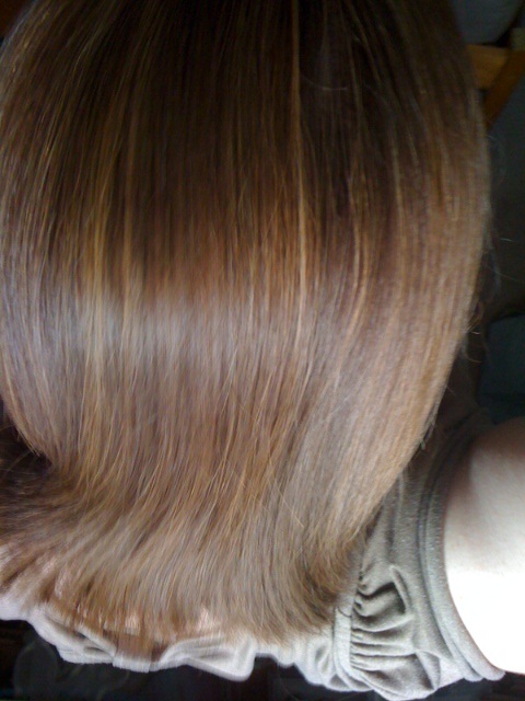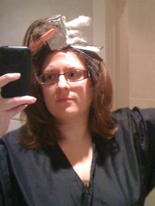 Finally I was persuaded by my fab hairdresser (Claire Fromage at Scissors, Poole) to try highlights/lowlights, so I’ve had a gentle introduction to the world of colour by still keeping it quite natural. Now this hasn’t fully covered the grey as I only had the T section done and up close they still appear quite obvious to me but from a distance when my hair is back I think it has blended more so I’m happy, except with the fact that mid process I looked like this! ;o)