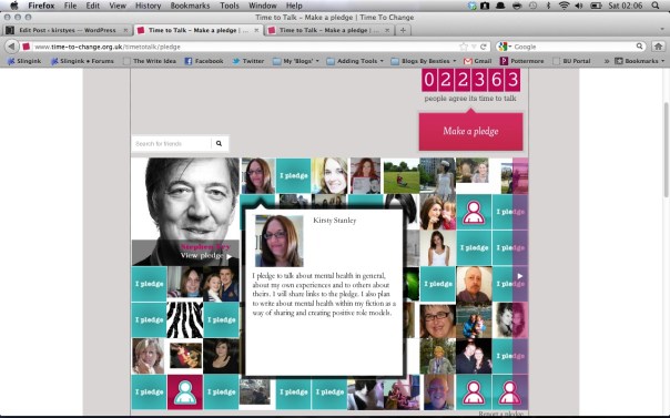 Writers and creative people in particular seem to, at least anecdotally, experience mental health problems frequently. I know I personally find it difficult to manage stress and have always been a very emotional person who tends to cry a lot (often when I am frustrated rather than always to do with low mood although some people struggle to understand this). I have felt judged at times when discussing this with others. One of the people on the Time to Change blog discusses the suggestion that people think you ‘can’t cope’. I also think that far too often in life people are pressurised to withdraw from stressful situations rather than the stressful situations being addressed and managed. There needs to be a balance between looking at the person and looking at the environmental aspects (as well as looking at occupations – but that discussion’s for another post).