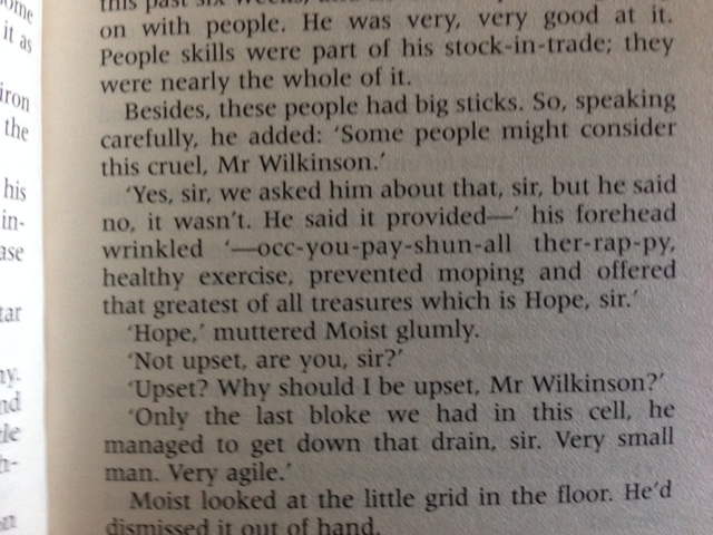 It’s easy to see why the character of Moist made it onto Jim Den’s top ten characters list – he is exceptionally witty and clever, and, although he doesn’t seem to recognise it himself, does have a heart that is only shifted just to the right of where it should be.