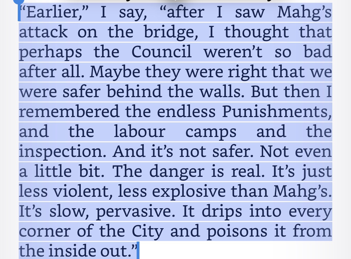 This was such a thrilling read with high stakes (both personal and societal) from the outset, and as a consequence had me zipping through to find out what happens.