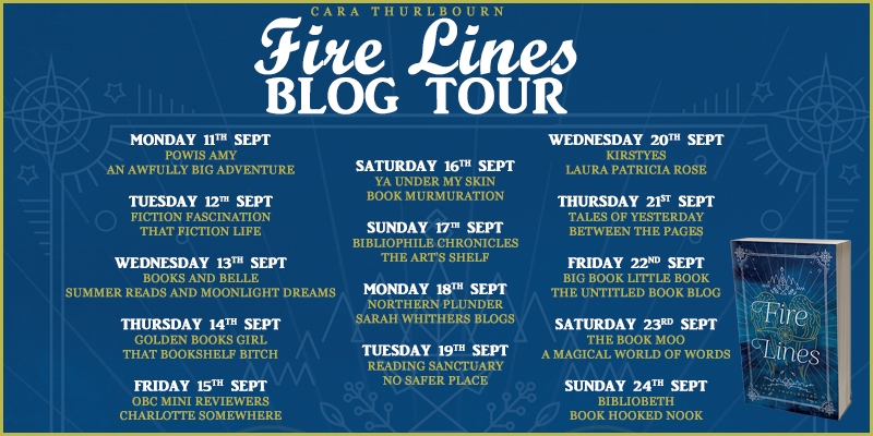 Welcome to my stop on the blog tour for Fire Lines by Cara Thurlbourn. First up just look at that cover. I love the line art and think it really suits the story.