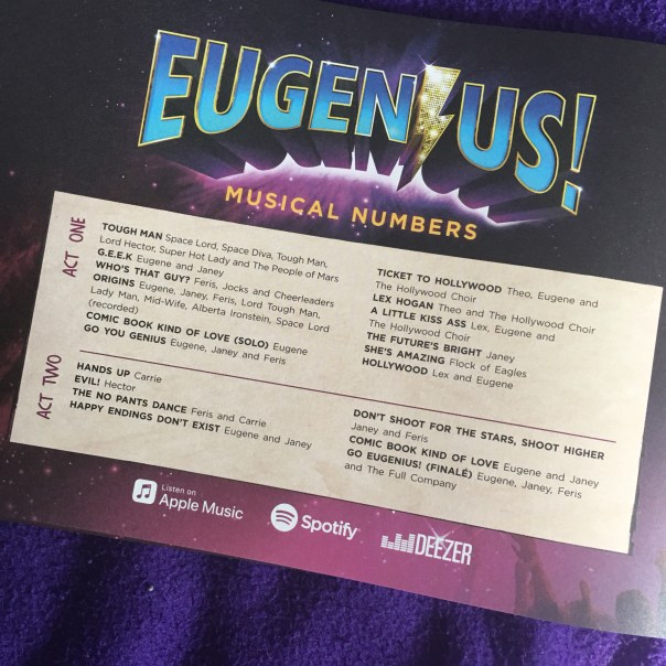 It has been around a week and a half since I saw Eugenius at The Other Palace – huge thanks to my friend Clarissa who said I would love it and let me have her spare ticket. Spoiler – she was right and I may now be a little obsessed. I’m sad that it’s unlikely I’ll be able to see it again before the run is over but if you can get to London and get tickets before the 21st October please do. You deserve this joy in your life. This show is so much fun and definitely deserves a full West End transfer and/or a U.K. tour (include Poole Lighthouse or Bournemouth if you do the tour please).
