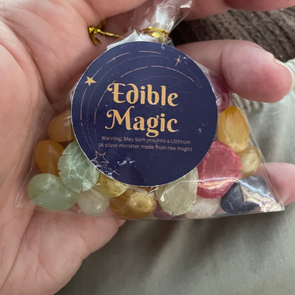 The book arrived to me with its own bag of edible magic which tasted very yummy, hopefully I have got away without turning into a Lilthrum.