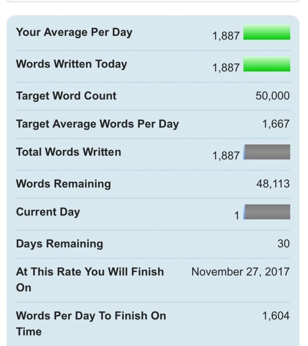 My writing stats so far. How’s your NaNoWriMo challenge going?