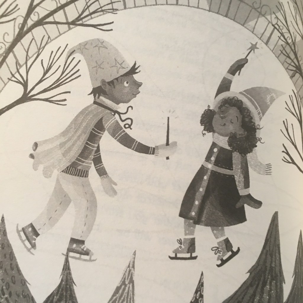 The book itself is stunningly bought to life by the illustrations from Eilidh Muldoon. From its striking pumpkin orange, with black block print, cover to the endpapers and the whimsical illustrations such as this one to illustrate ‘A Cold Spell’.