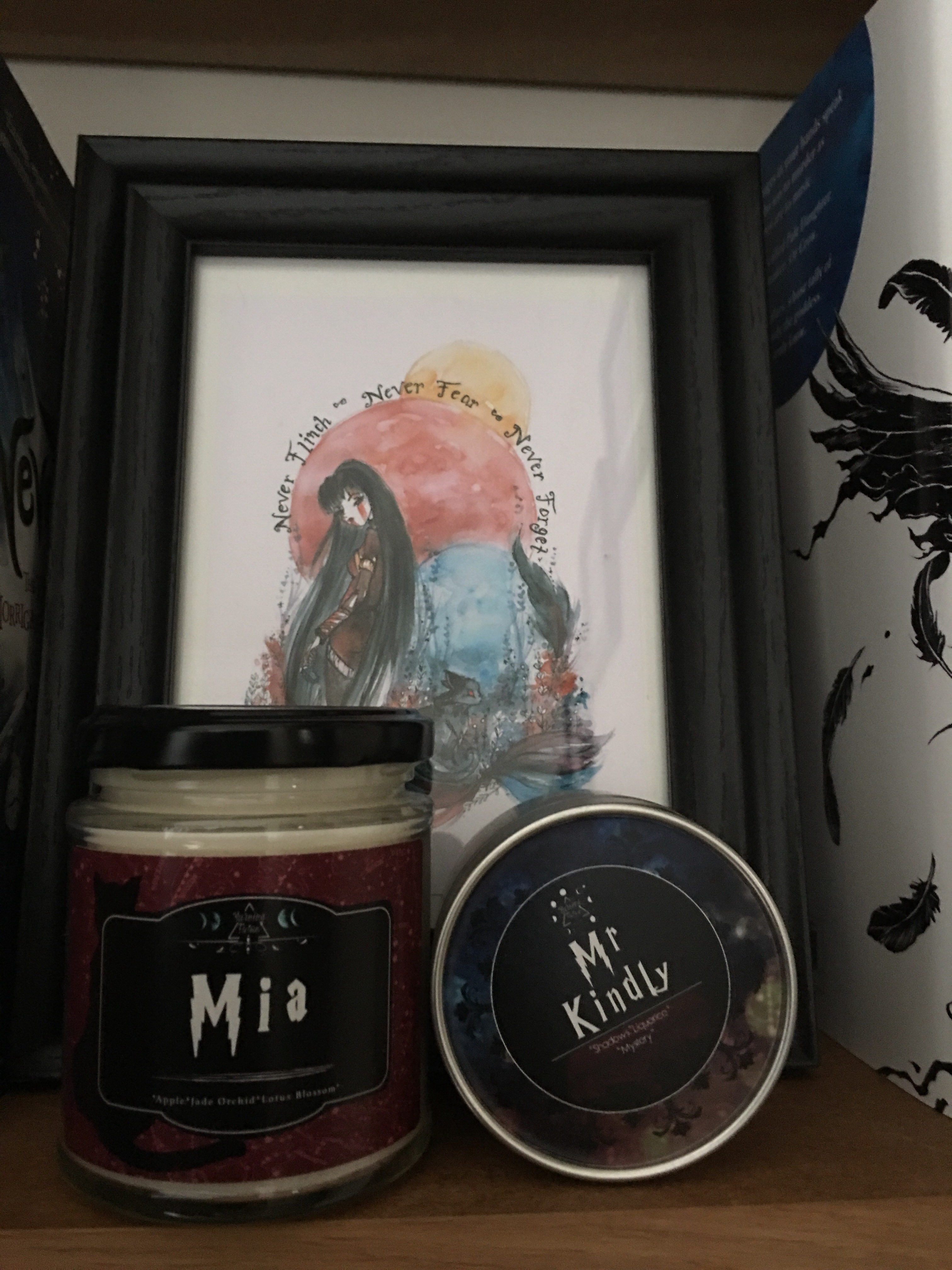 I’ve been following her on Instagram for a while and even bought her Nevernight Mia and Mr Kindly candle duo from her Etsy shop Burning Fiction. They smell divine.
