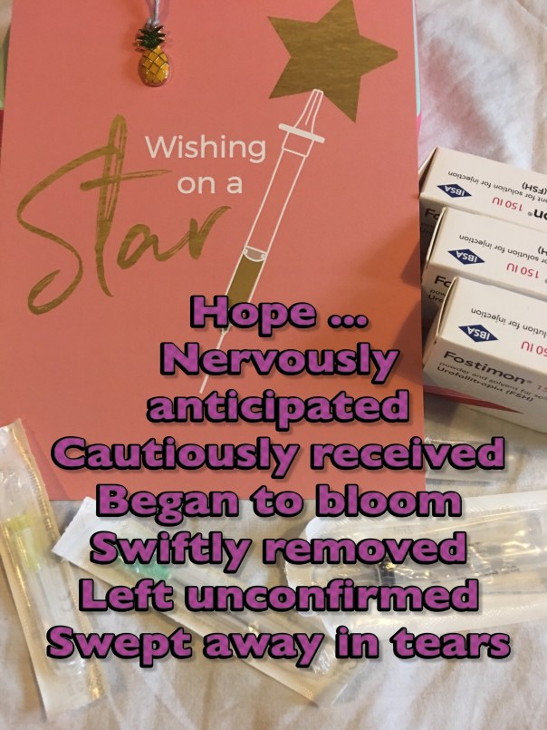 Hope is a funny thing. We need it but it can be overdone. Everyone wants life to be easy. People want to tell you that the miracle will happen for you. That you’ll be one of the lucky ones when chances are that actually you might not be. At least not first time. In the clinic they went through the steps you’d take if the results were positive. Nothing was said about the negative initially. People need to be better prepared for all eventualities.