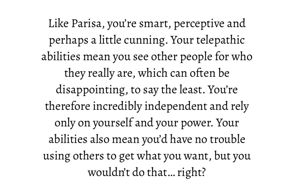 And a quiz to find out which character you are most like. Supposedly I’m Parisa!